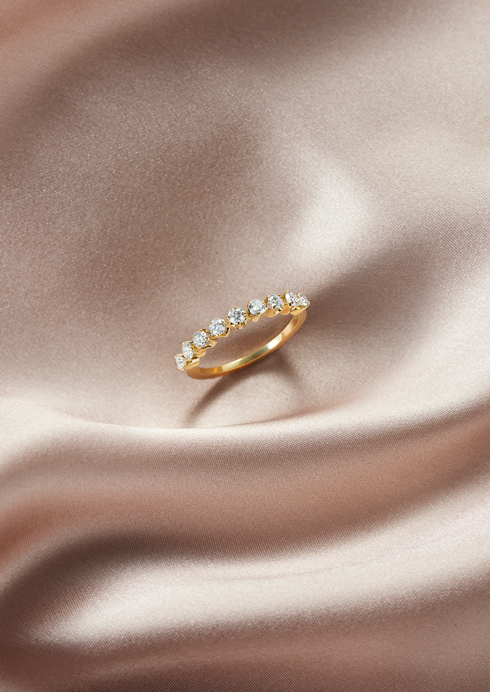 The diamonds are set with precise craftsmanship, giving the ring a new look. We also manufacture the ring model as an eternity. Coloured stones can be set among the diamonds, such as pink sapphires. A small touch makes the ring uniquely yours. The price shown is a starting price. We work with different diamond sizes and qualities. Prices vary depending on the final design and options. Contact us for more information on the available models.