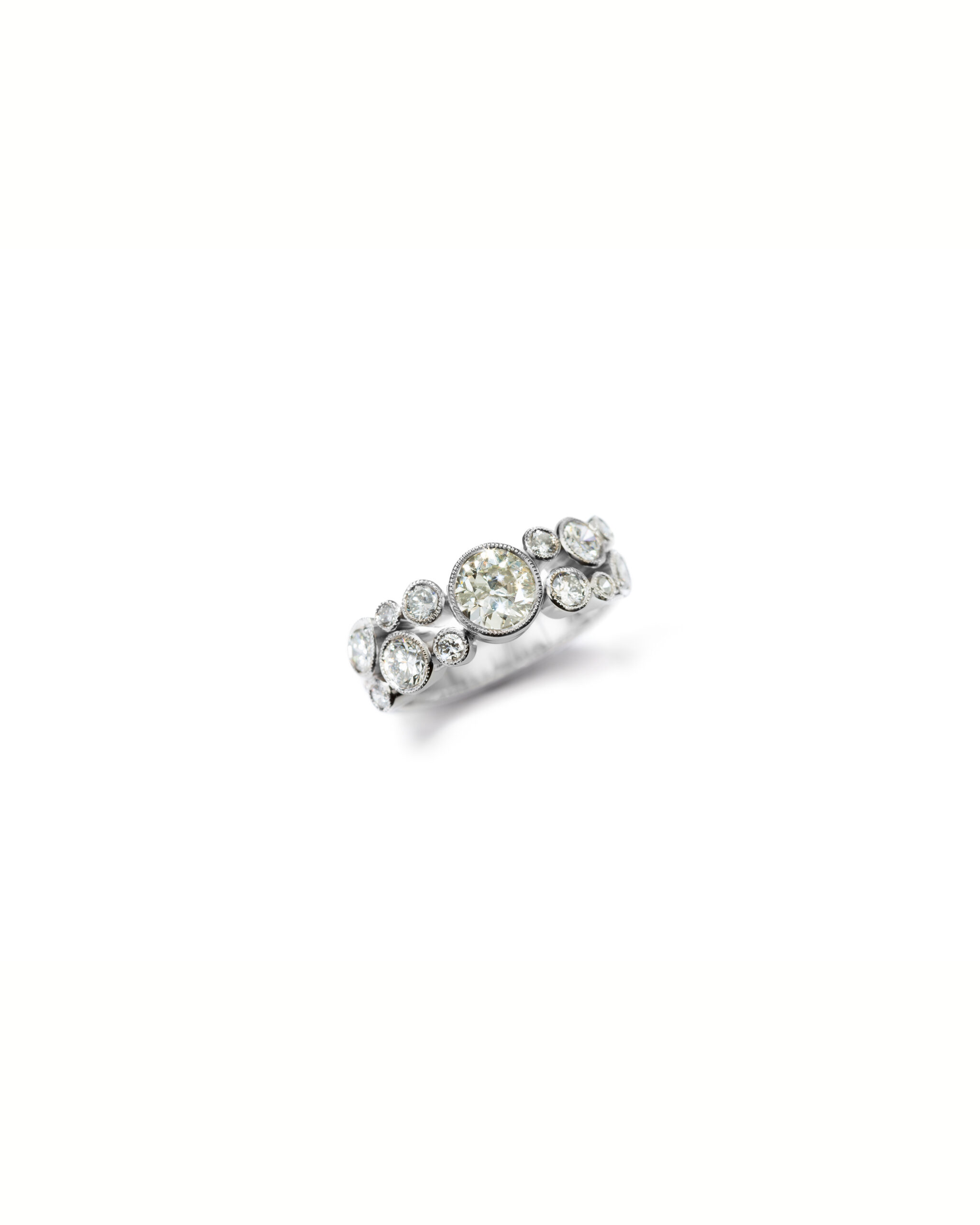 Be bold and different and choose a ring that fits your personality. This two-row half eternity ring with diamonds is made of different-sized brilliant cut diamonds set airily in the ring. The price is indicative only. Prices vary depending on the final design and options.