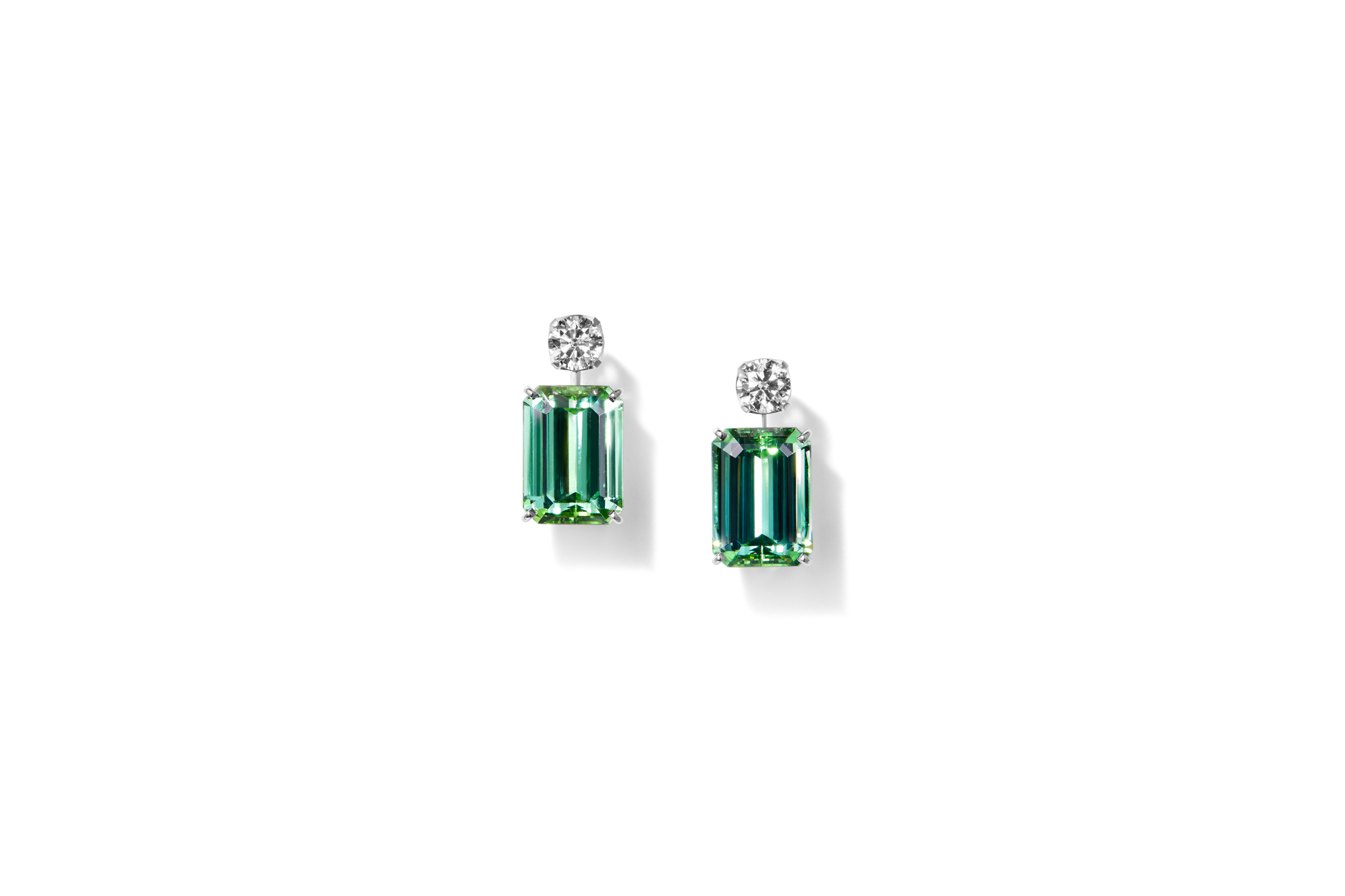 Detachable tourmaline add-ons bring a fun addition to classic diamond studs. These tourmalines are from Namibia and are rich in colour. Wear the add-ons together with other stud earrings as well. Only your imagination is the limit. The prize is set for the detachable tourmaline add-ons.