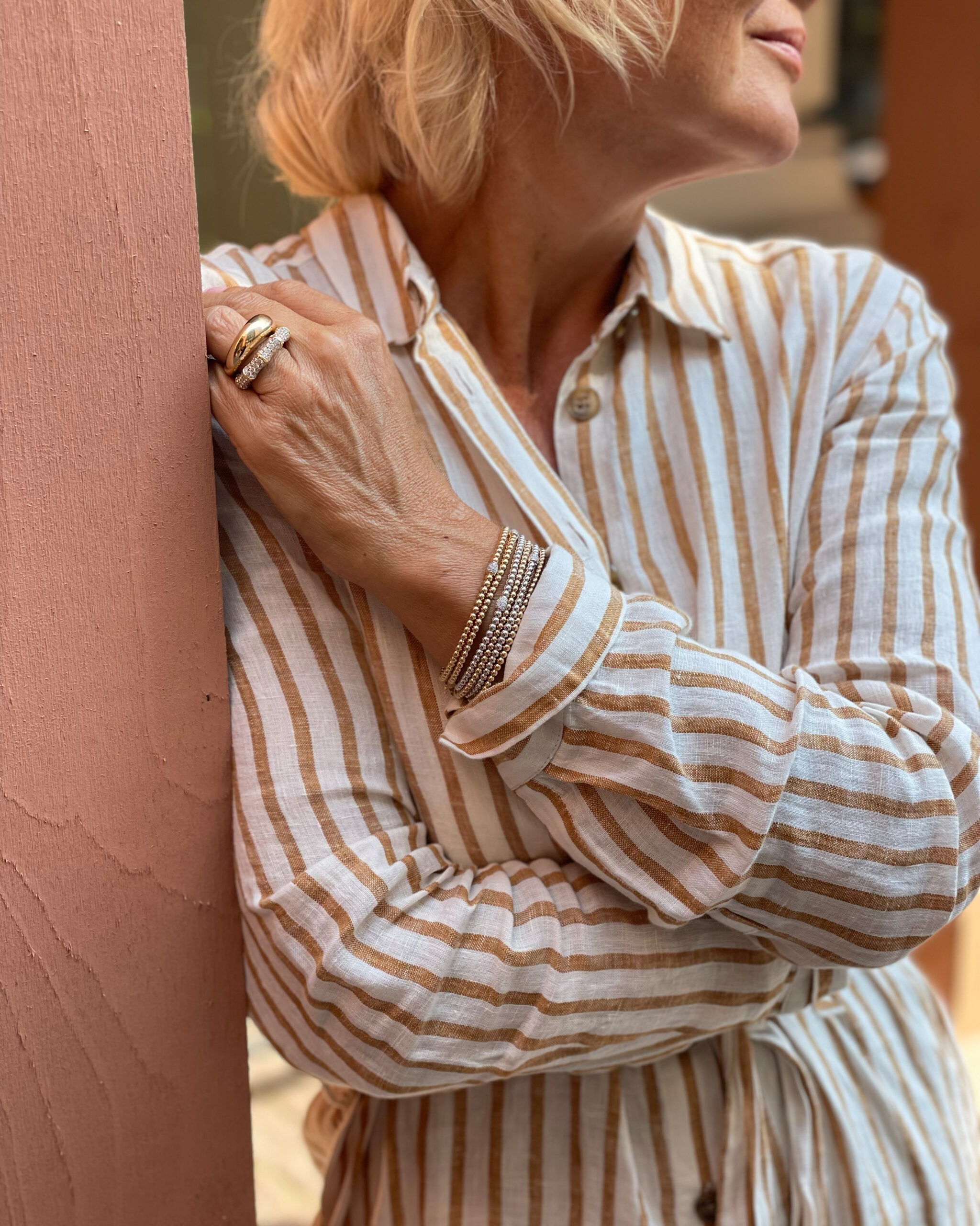 A bold, substantial pavé diamond ring that pairs beautifully with our Bombé ring. This ring is set with 140 brilliant-cut diamonds in gold.