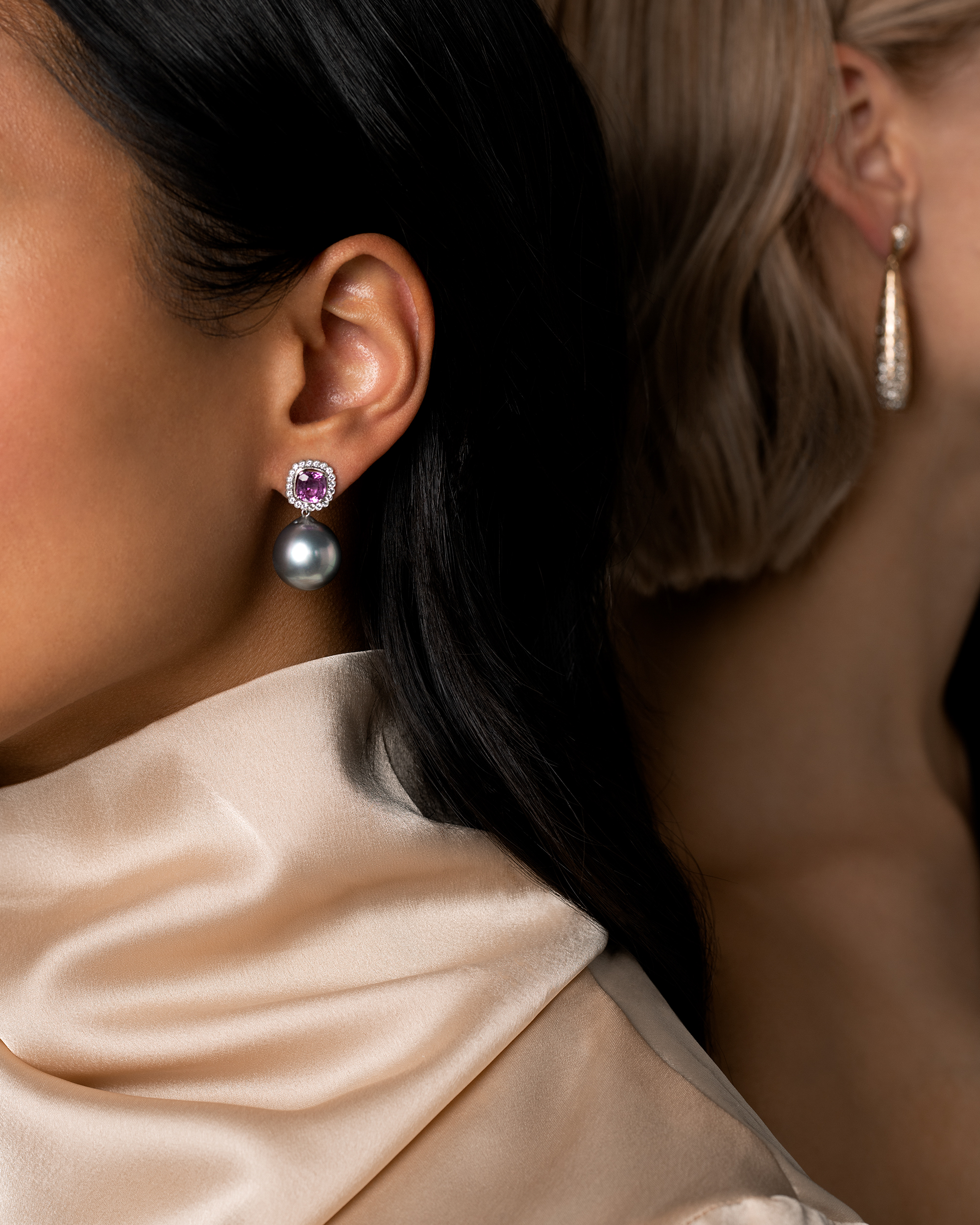 Diamonds, Pink Sapphires, Tahitian pearls