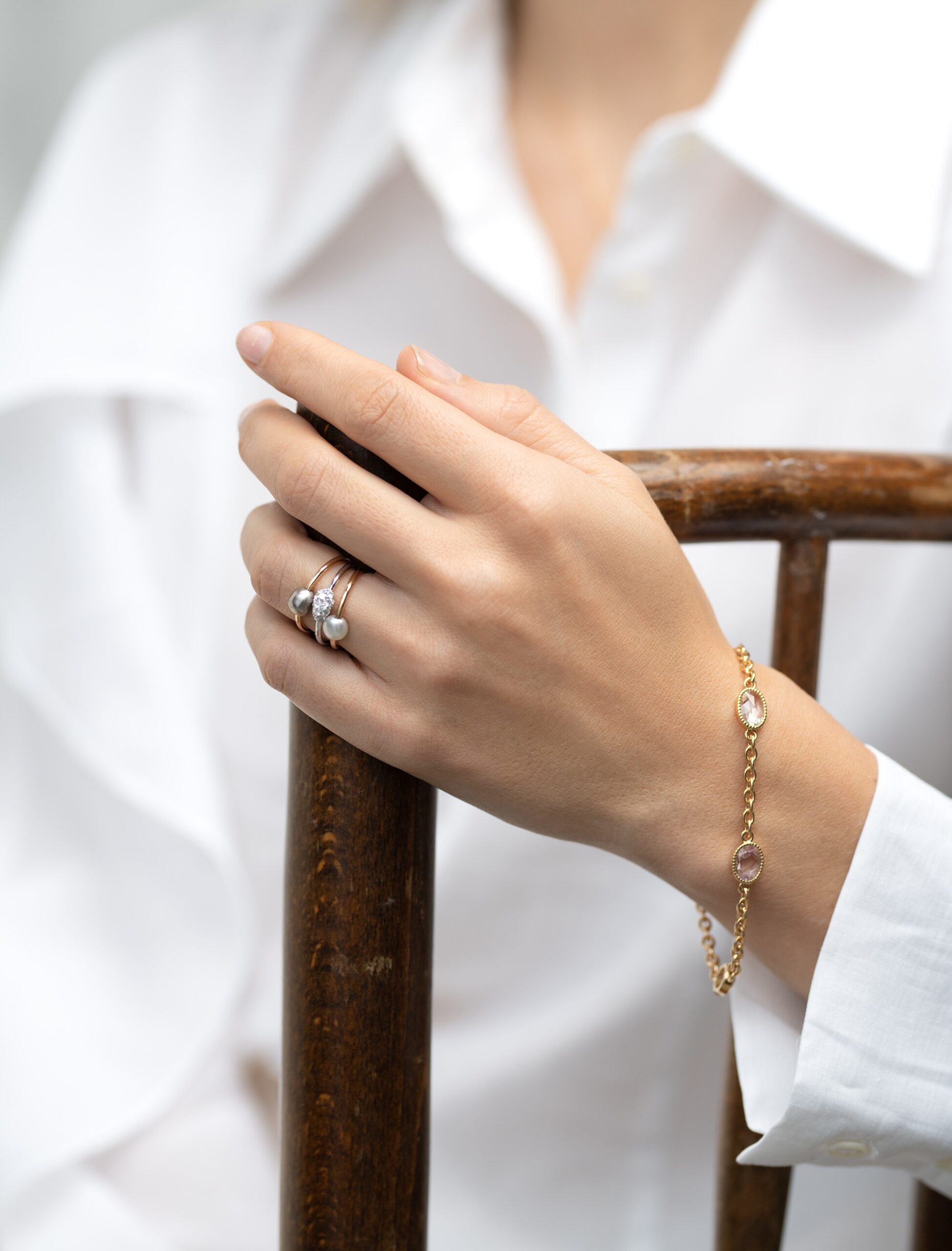 Delicate brilliant-cut diamonds on the rings lend a refined sparkle, effortlessly elevating everyday style. Stack them for striking brilliance, or wear a single ring for a touch of refined simplicity. Ease ring is also designed to be paired with the Brease necklace,  and ease rings, also belonging to Transparency collection. Design by Jenny Tillander.