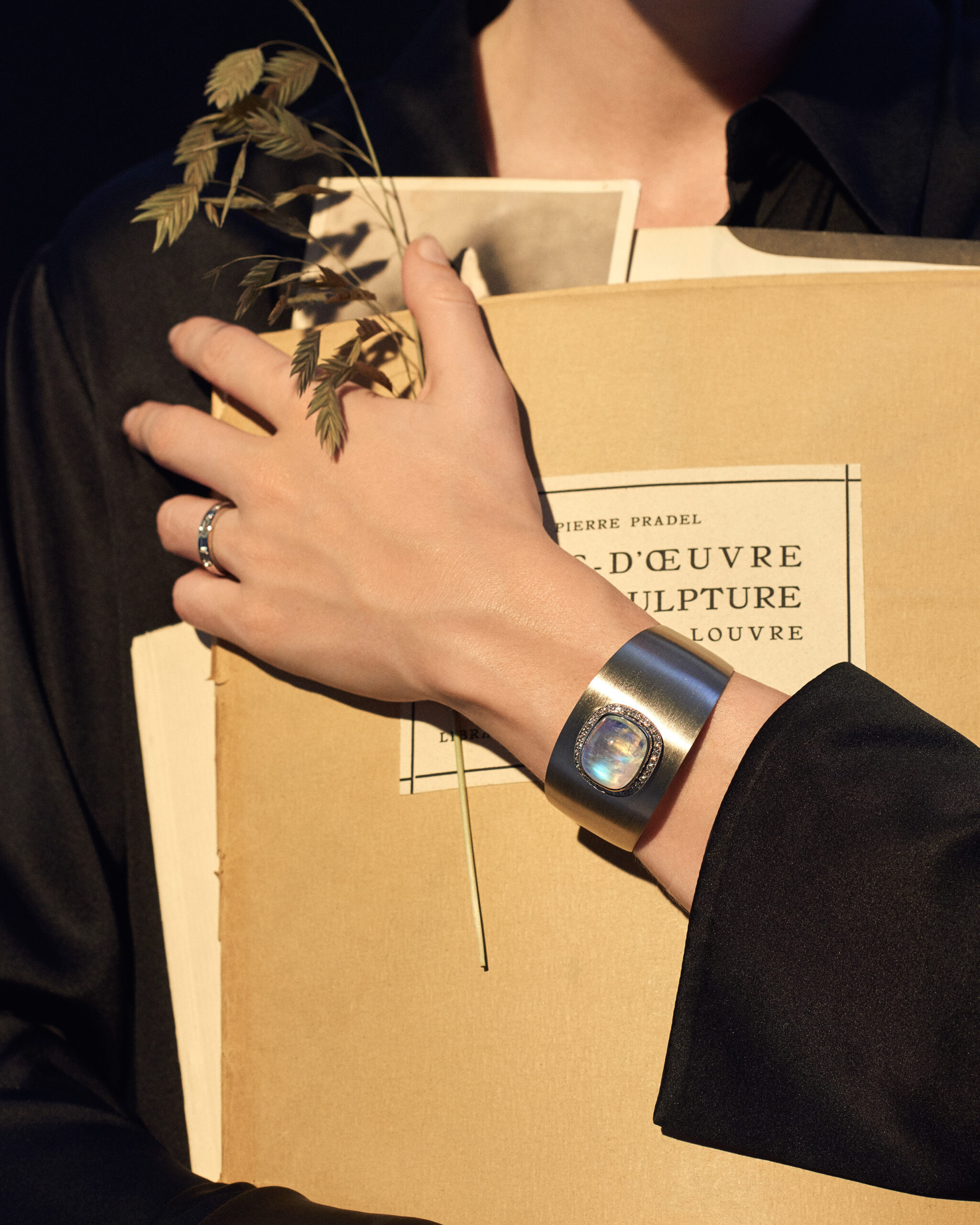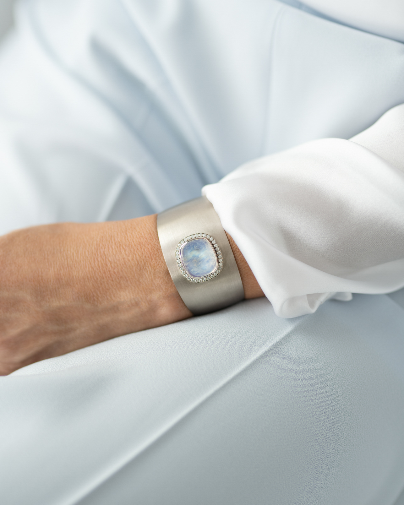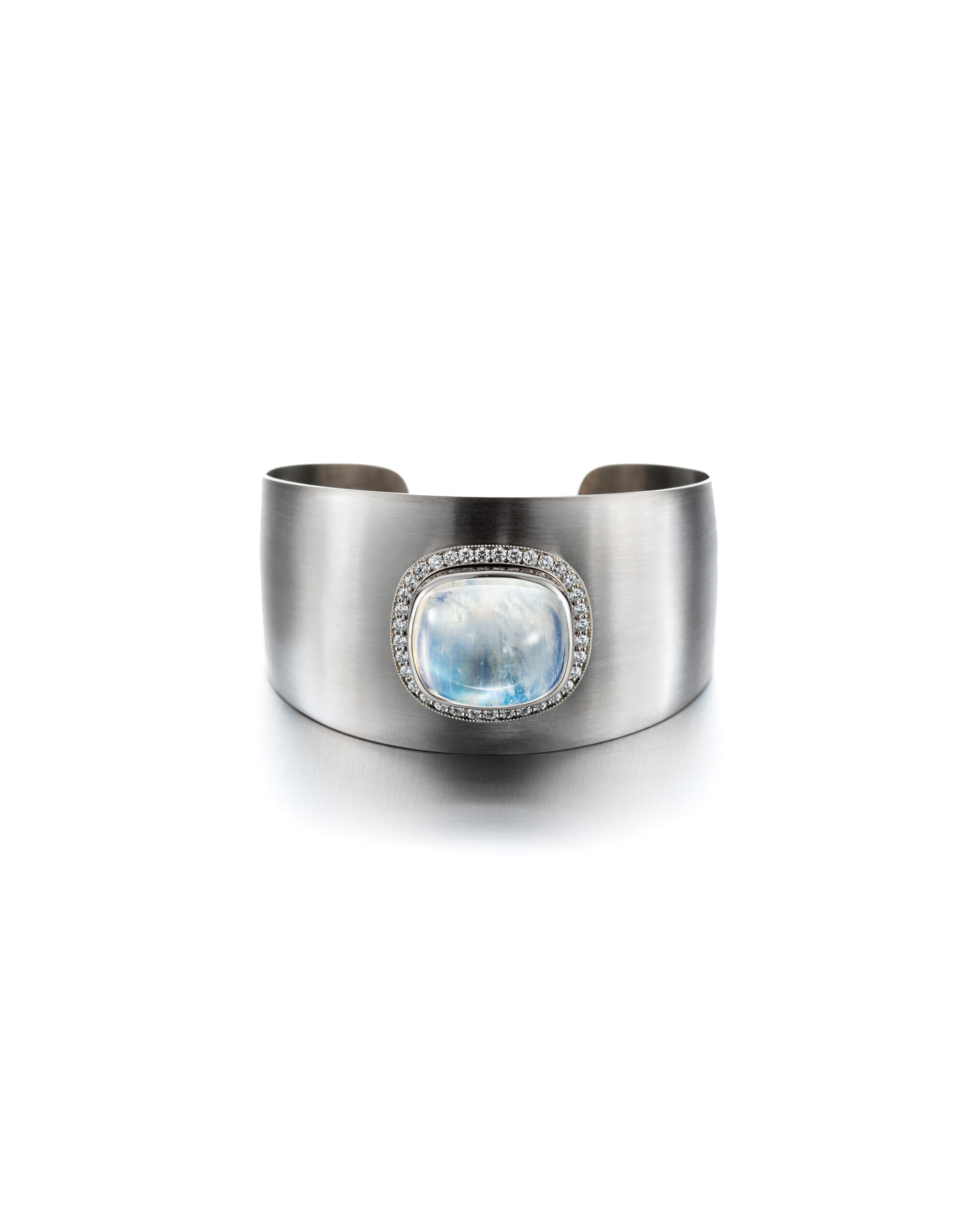 This unique piece is handmade in our workshop, as well as all our jewelry. Designing one of a kind pieces of jewelry is our core expertise. It’s inspiring and never gets boring. In this bracelet, the adularescence of the moonstone is almost like a dream. The soft blue light of the gemstone emits is something you could admire for hours. Handcrafted by our master goldsmith Janne Salminen.