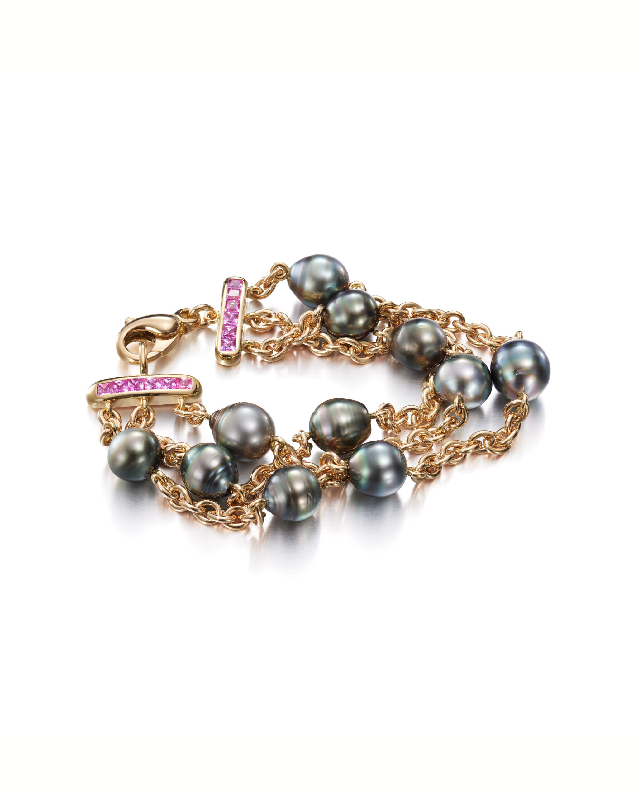 A Gold Chain Bracelet with Tahitian Pearls and Sapphires