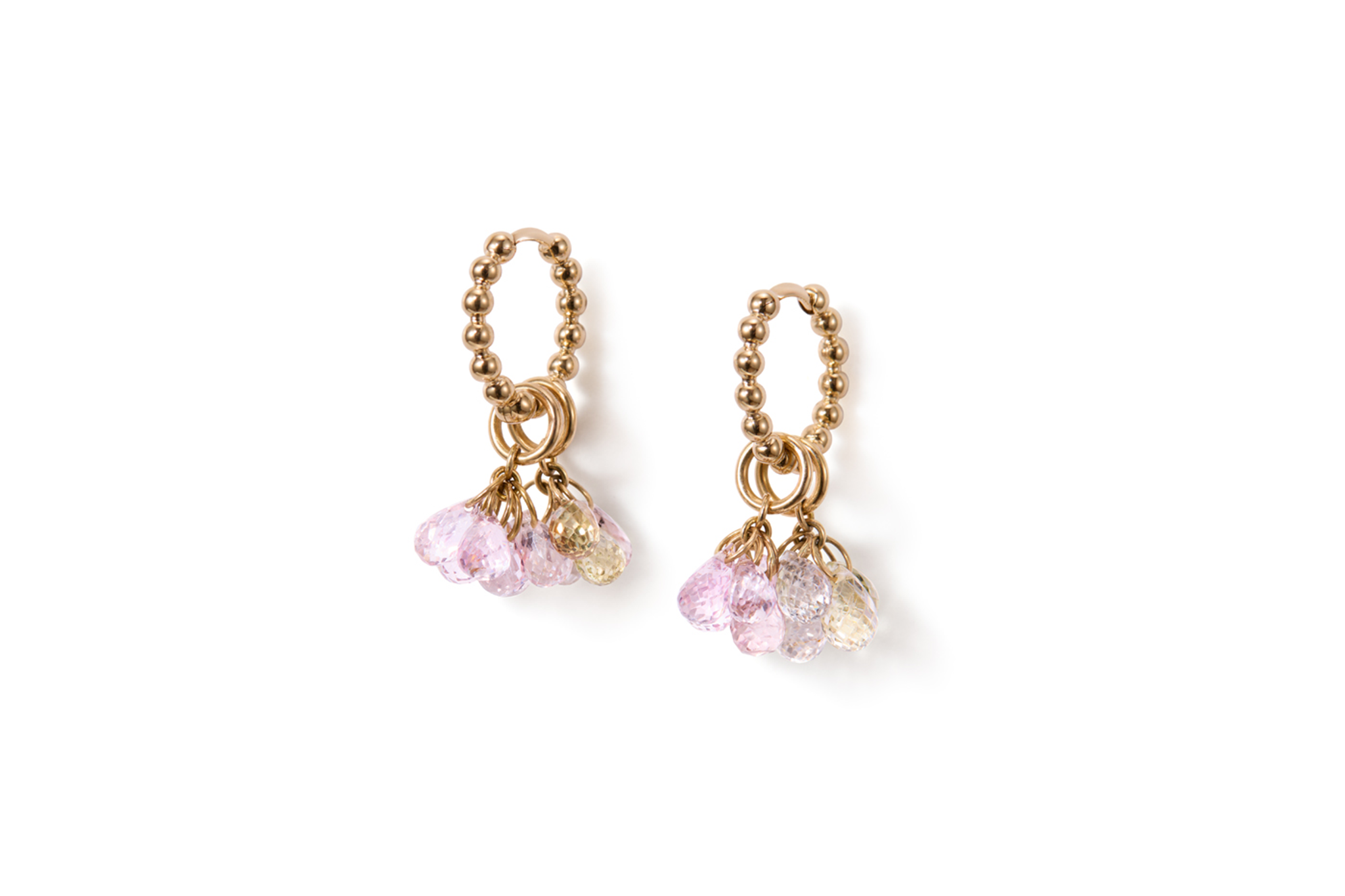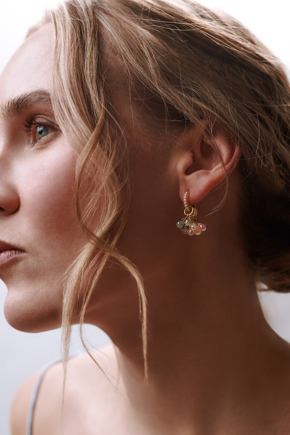 Brighten up your look with playful morganite and sapphire dingels. Wear them together or separate. On a diamond hoop, or these relaxed sphere hoops for a perfect Sunday attire.