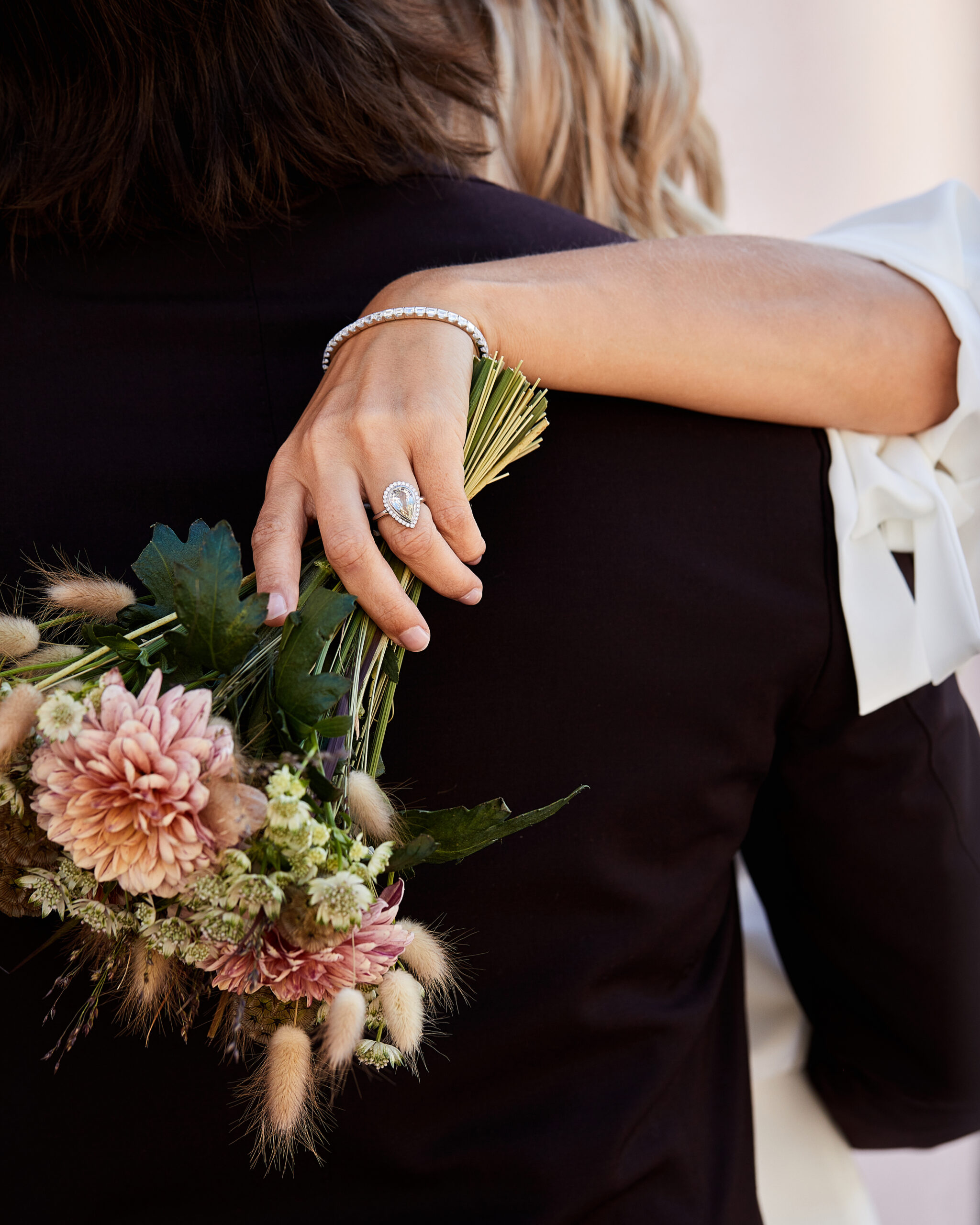 A breathtaking drop-shaped sapphire ring in a warm vanilla hue, surrounded by a halo of brilliant-cut diamonds that ensure its sparkle never fades, even in dimmer light. This exquisite piece is designed to turn heads and captivate every gaze, making it the perfect choice for glamorous cocktail events. Handcrafted by our master goldsmith Janne Salminen.
