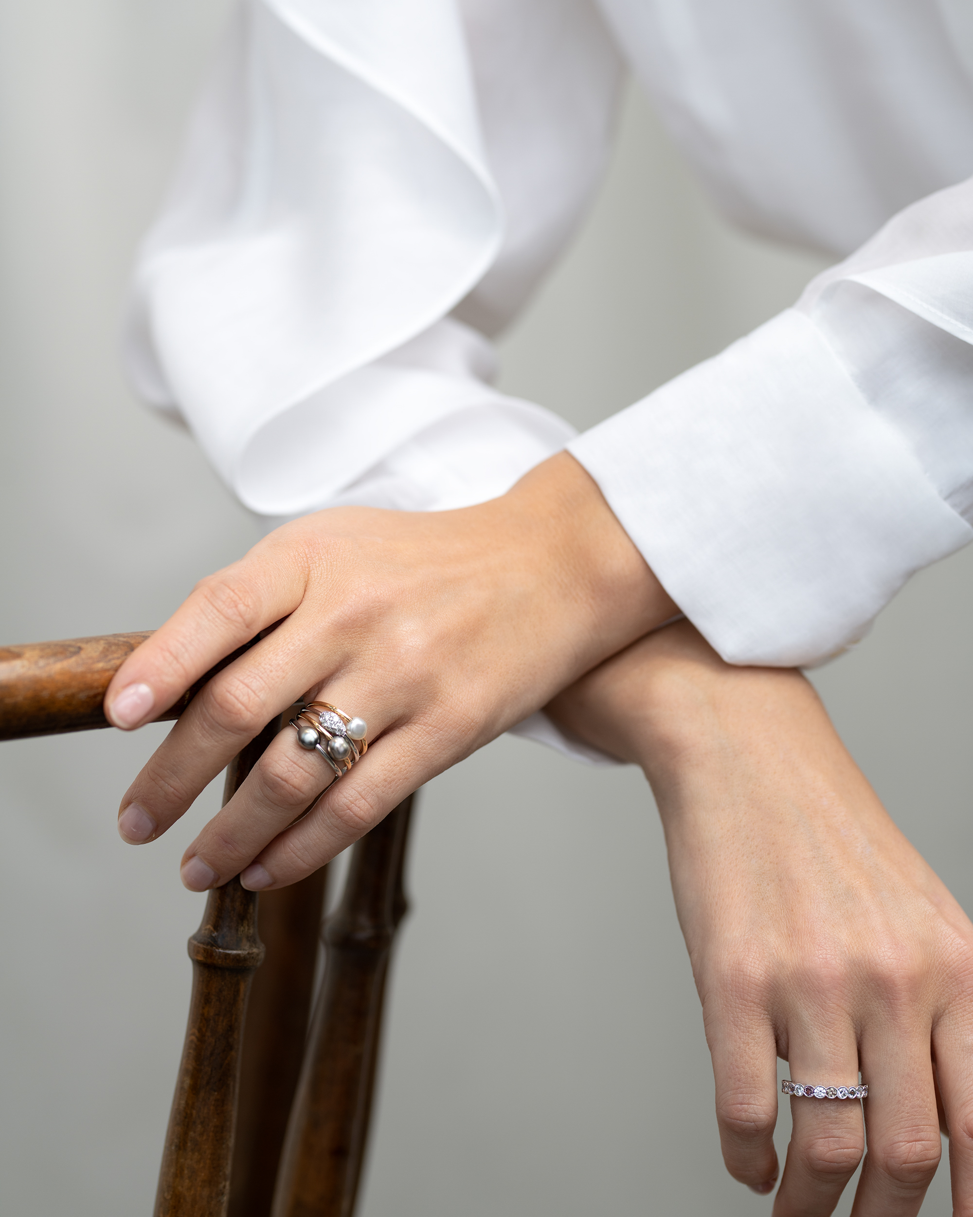 If you love more delicate pieces, this one is for you. A small Keshi pearl with a gold shank makes it the perfect everyday ring. Wear it alongside our smallest Bondie or the brease diamond ring for an impeccable look.