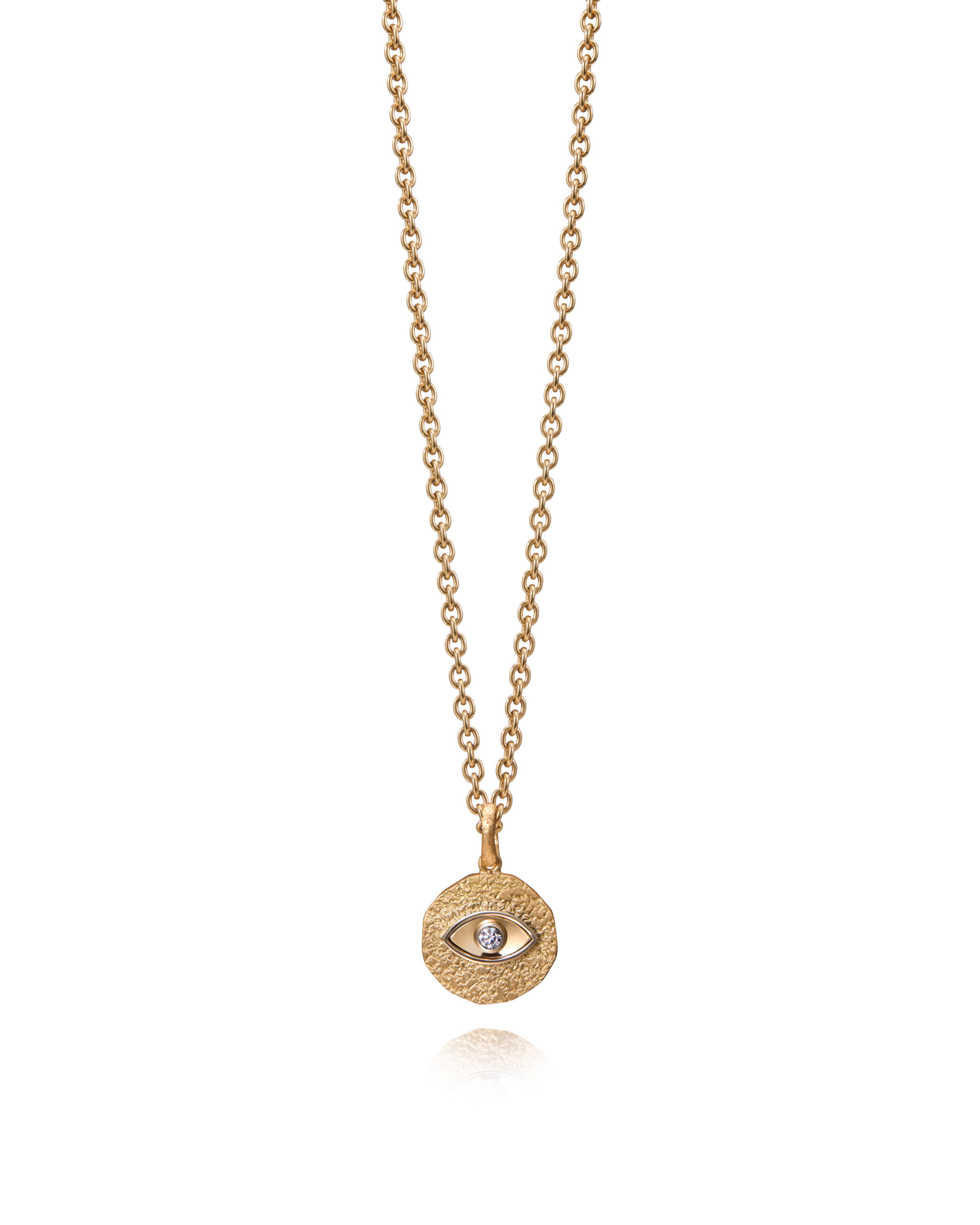 This Evil Eye pendant symbolizes protection and good luck. Traditionally worn as a talisman to ward off negative energy, it’s also a versatile style accent that pairs beautifully with other necklaces for a layered look. For a relaxed beachy vibe, wear the pendant on a suede or leather cord. You can also mix metals or stack with delicate chains for a modern, bohemian-inspired ensemble.