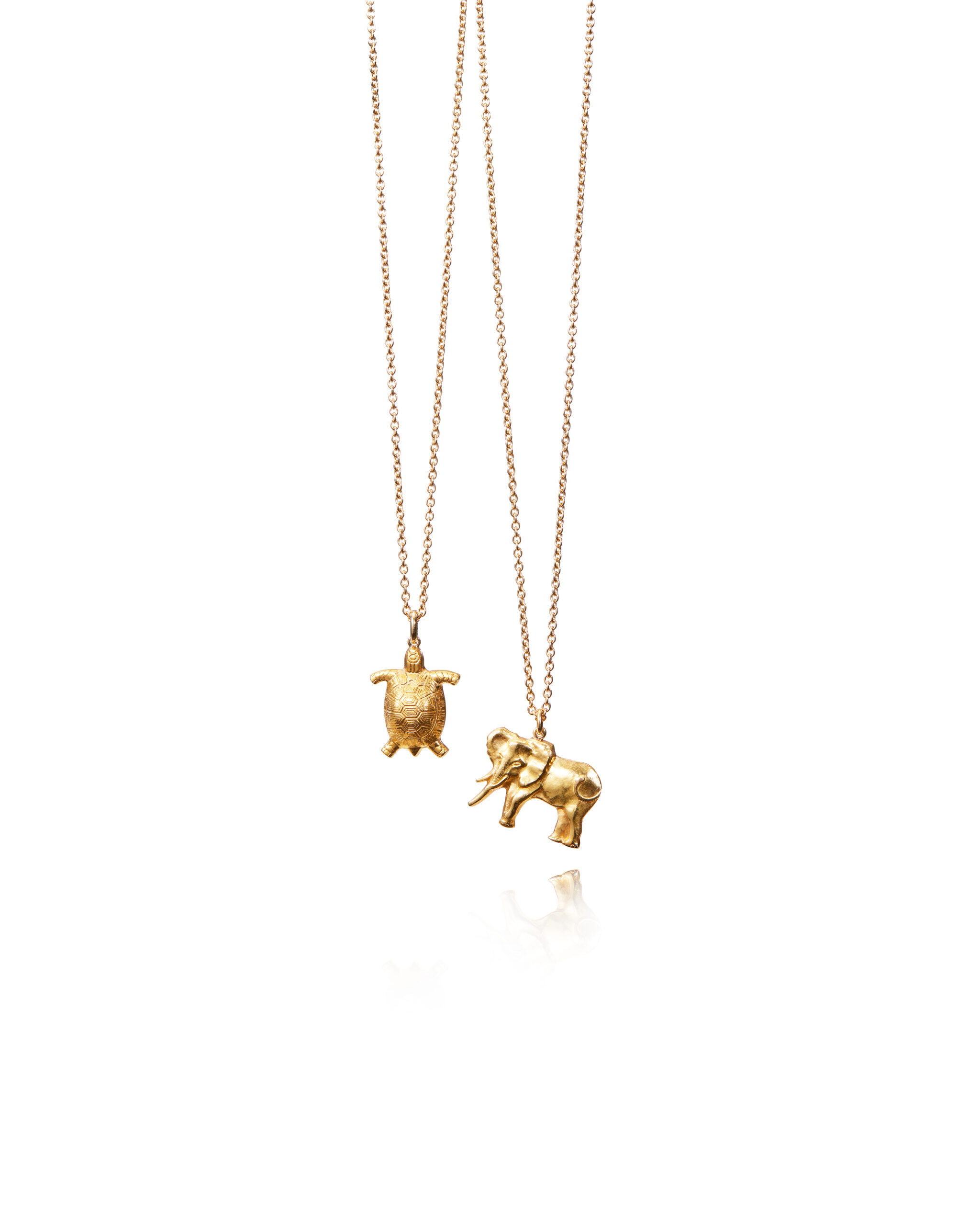 We brought back the classic turtle and elephant pendants designed by Torbjörn Tillander in the 50s and 60s with Tina’s modern twist. The wise animals of our Family Furever collection – the elephant and the turtle – symbolize longevity and peaceful living in a world that is in a hurry. We cherish that power of endurance in our jewelry as well. The elephant, an animal that carries memories – shines in our Never Forget –pendant. The piece of jewelry that remembers what you want to keep close. The turtle – the protector of sensitivity – shines in the Forever Resilient –pendant. The piece of jewelry that balances your journey and protects your boundaries. These 999 ‰ fine gold pendants are waiting for you. Just as animals tell their own stories, you too can choose a gemstone of your choice for your jewelry, as a reminder of the moments, people and feelings that deserve to be close to your heart. An elephant doesn’t forget and a turtle doesn’t give up, and neither should you.