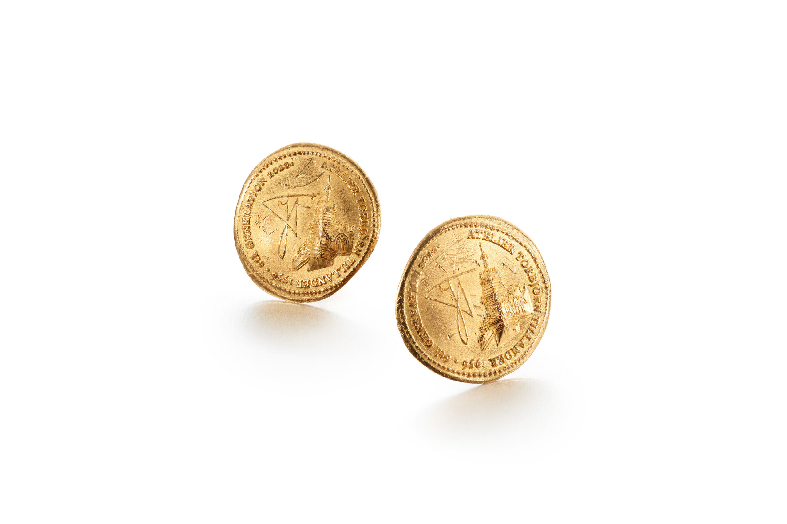 These minimalistic earrings are available both with studs or hooks. The coin-like plate is made out of fine gold and is designed as an homage to the Tillander family’s history as jeweler’s. One side of the coin is devoted to Alexander E. Tillander, the family’s ancestor and first jeweler. The other side includes the façade of the Grönkvist building where the shop is located today. Design by Jenny Tillander.