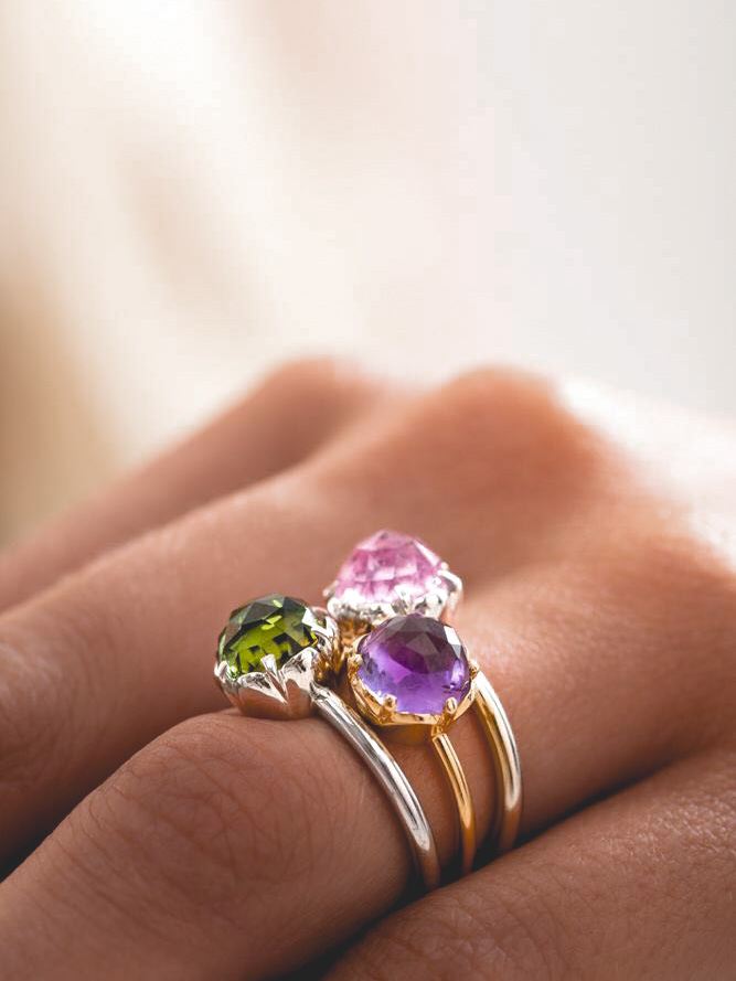 The Cupcake pieces are designed to be versatile, making them the perfect choice for earrings, rings, or even unique bracelets. Whether paired with yellow gold or white gold, the timeless design and vibrant colors of the stones make each piece a standout addition to any outfit.