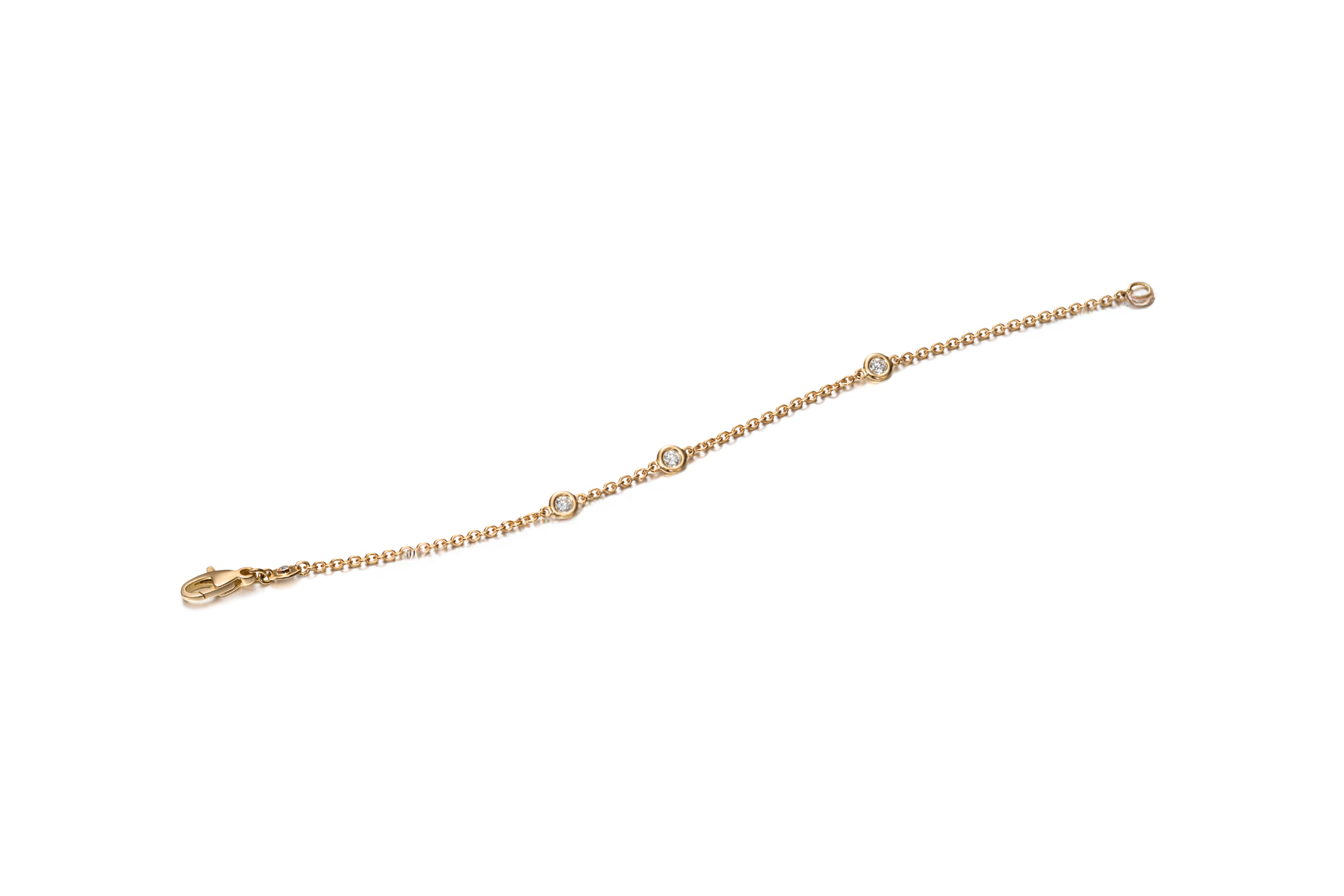 A perfect everyday bracelet with three brilliant cut diamonds in separate settings. Wear together with our stretch bracelet or with other dainty chain bracelets.
