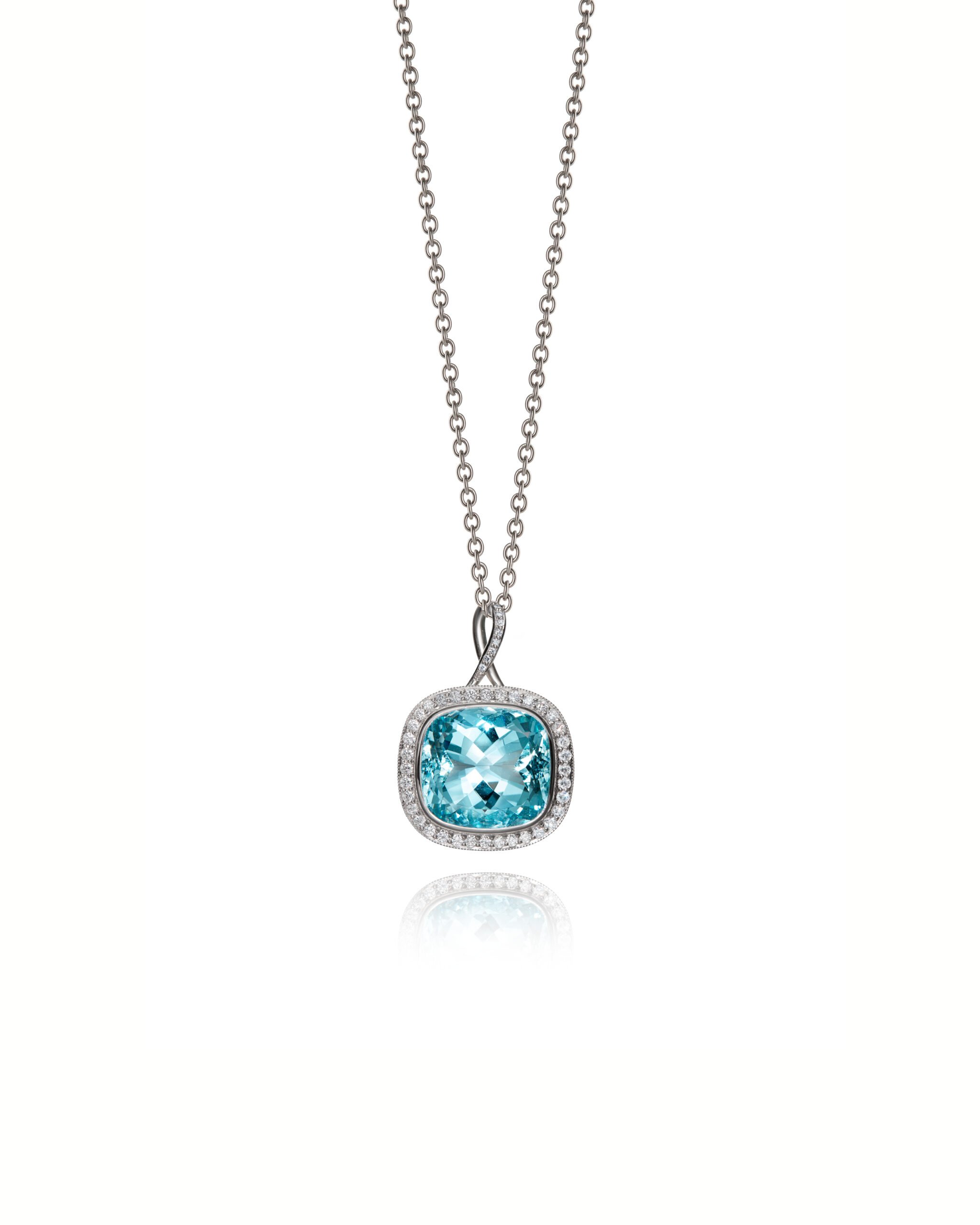 Carmosier pendant featuring a stunning 22.10ct aquamarine and a total of 0.74ct brilliant-cut diamonds. Crafted in 18K white gold (750 ‰). The chain is sold separately. Handcrafted by our master goldsmith Janne Salminen.