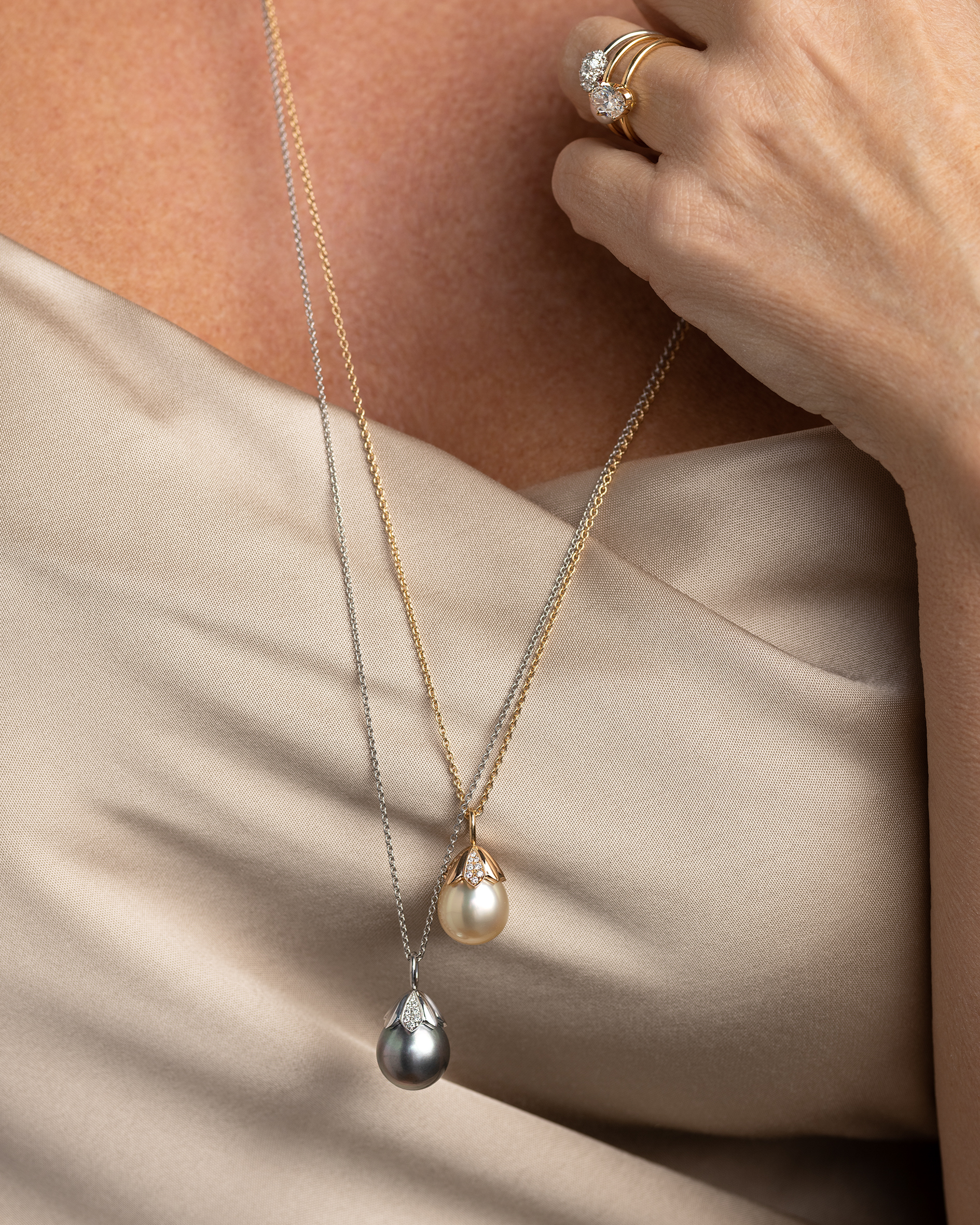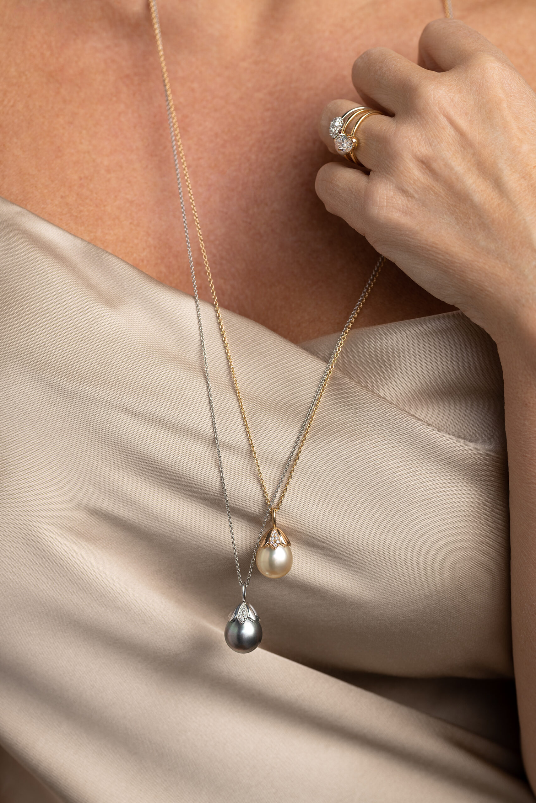 | Stones | South Sea pearl, Tahitian pearl & brilliant cut diamonds of F-G/vvs quality. |