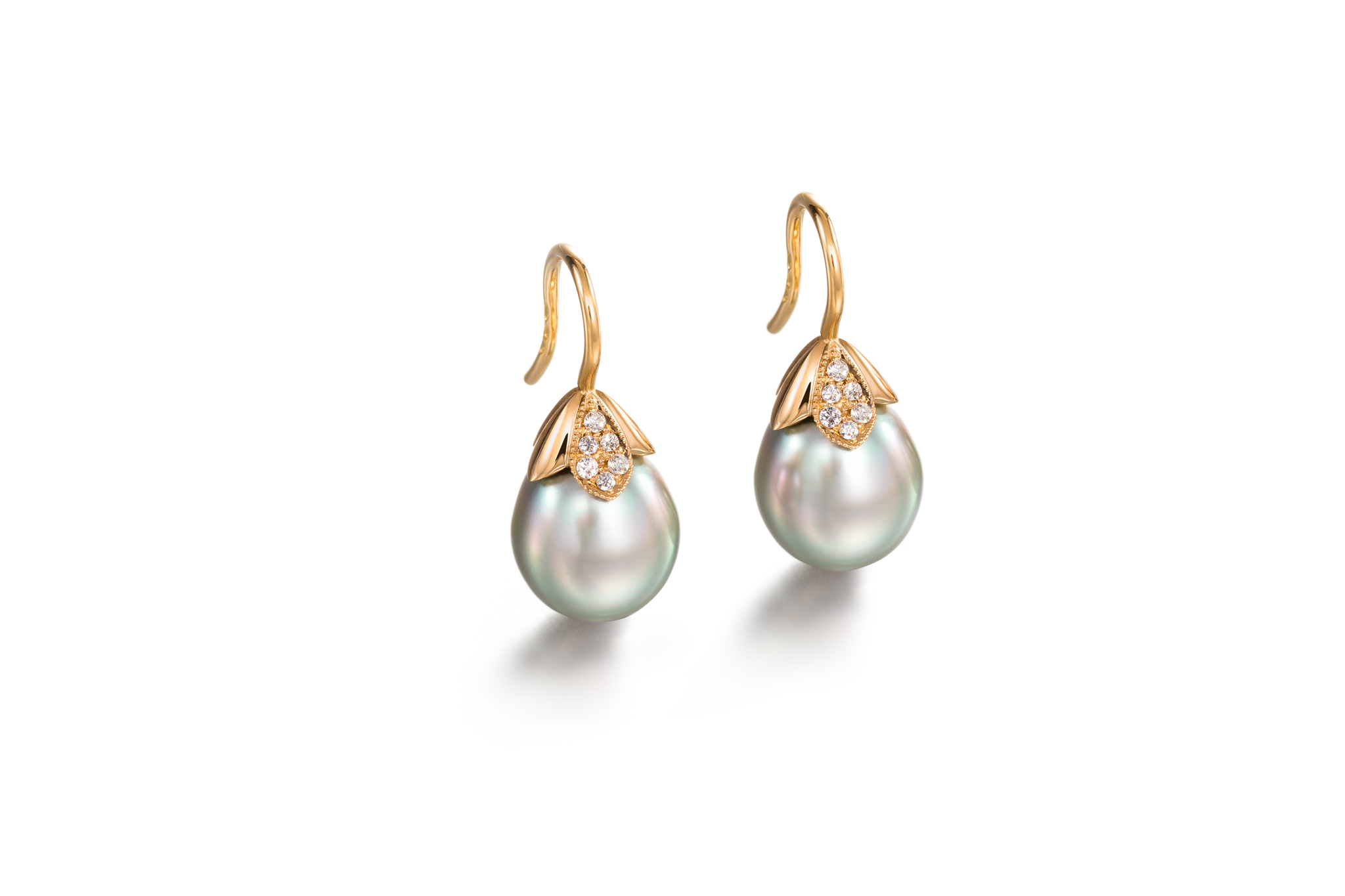 Meet these beautiful Pom Pom earrings with drop-shaped Tahitian pearls. Choose your favourite pearls for everyday use. The Pom Pom setting makes the earrings more unique and are a perfect choice for the modern woman.