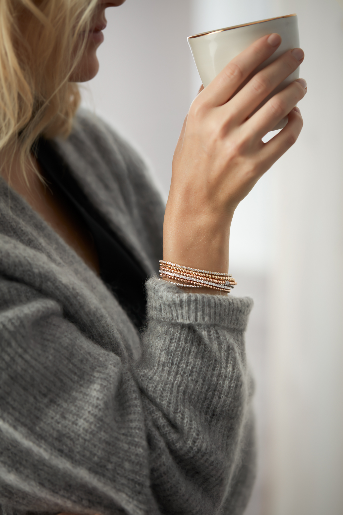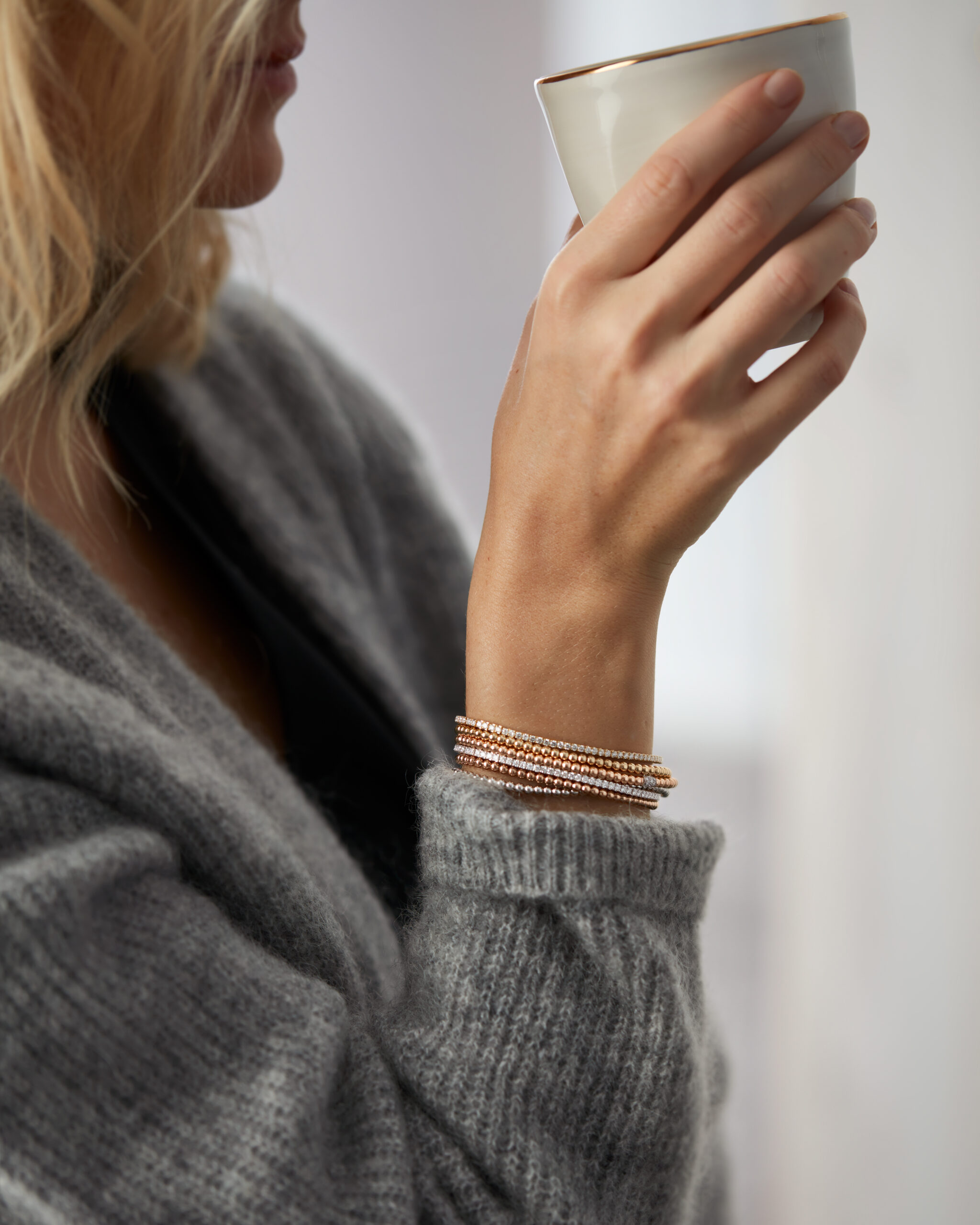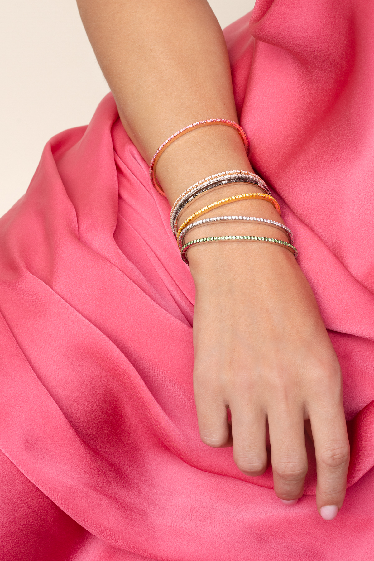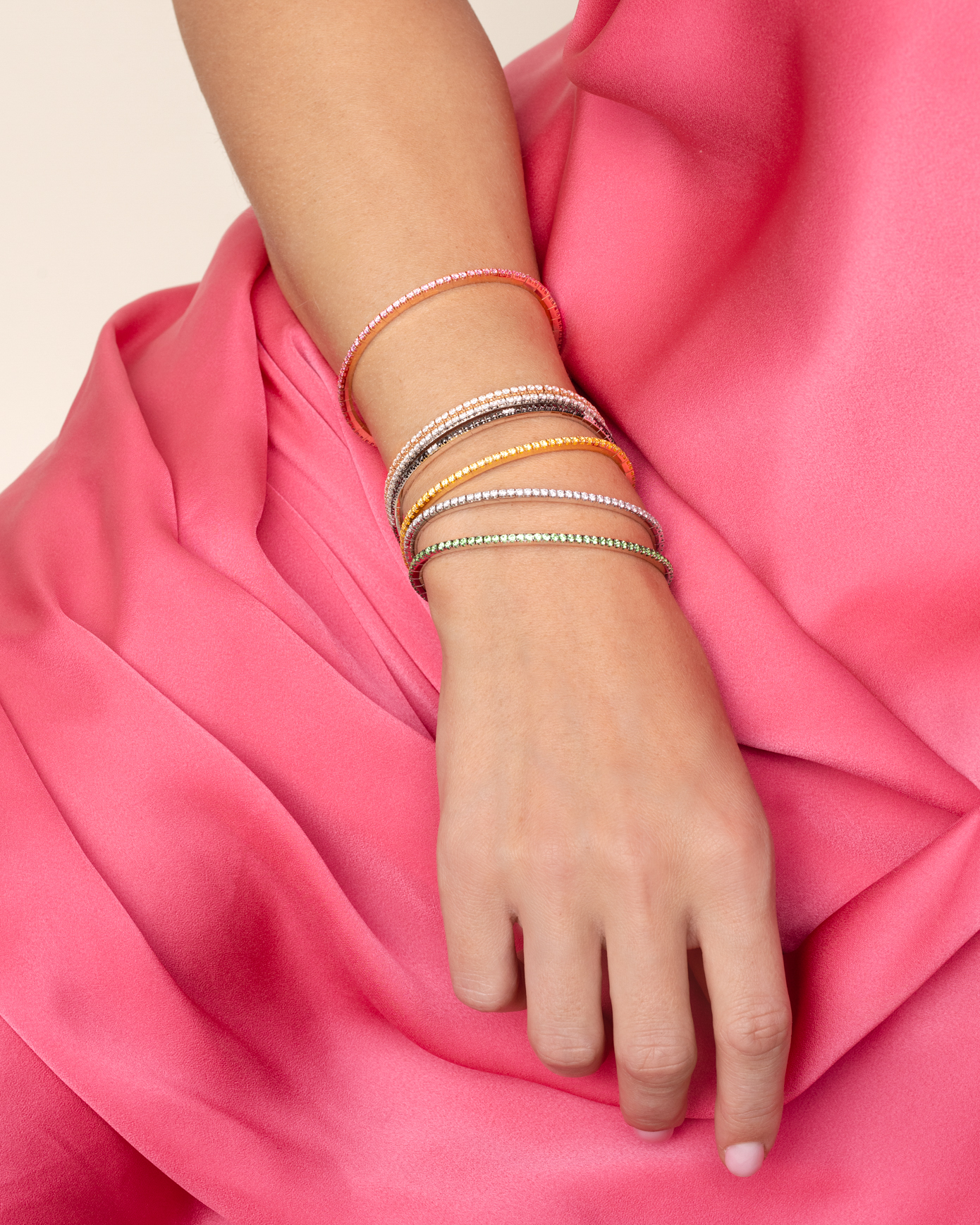A refined stretch bracelet adorned with brilliant-cut diamonds, crafted in 18K rose, white, or yellow gold. Available with various diamond sizes and in multiple lengths, it is designed to become your favourite everyday piece. Effortlessly easy to wear, its elegant versatility makes it perfect for pairing with other bracelets when you desire a touch of extra sparkle. Riviere bracelets By Demeglio.