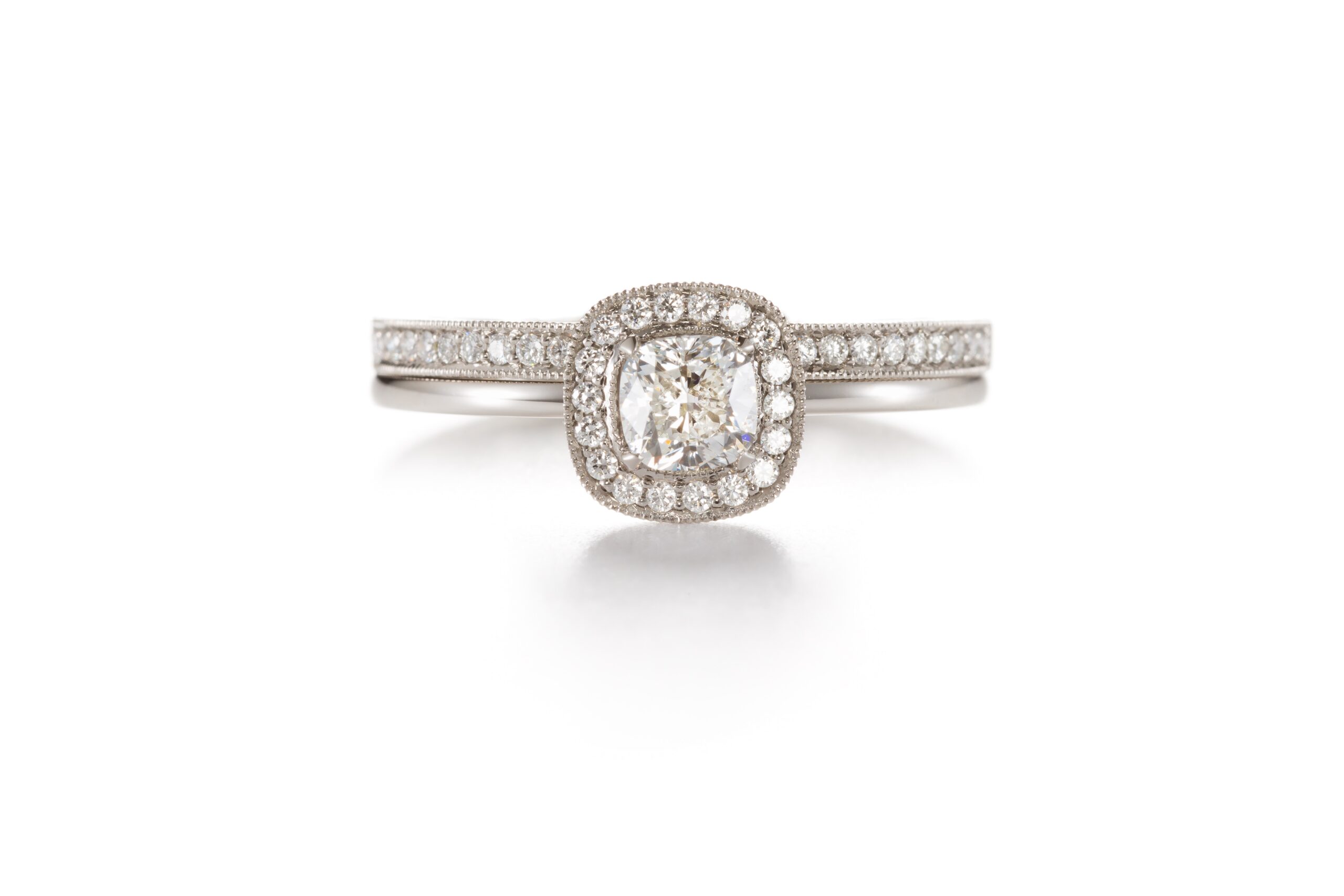 | Stones | Brilliant cut diamonds 0.065cts, Brilliant cut diamonds 0.13ct, Cushion cut diamond 0.50ct H/vs1 |