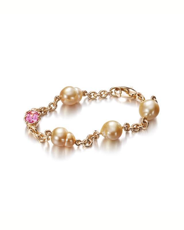 Our atelier’s signature Cupcake-set gemstone adds a gentle contrast to this feminine bracelet. Ir pairs beautifully with the soft pearls, while the pearls bring light to the warm and thick gold chain. The design feels balanced and easy to wear, making it suitable for both everyday moments and special occasions. Handcrafted in Helsinki by our skilled goldsmiths.