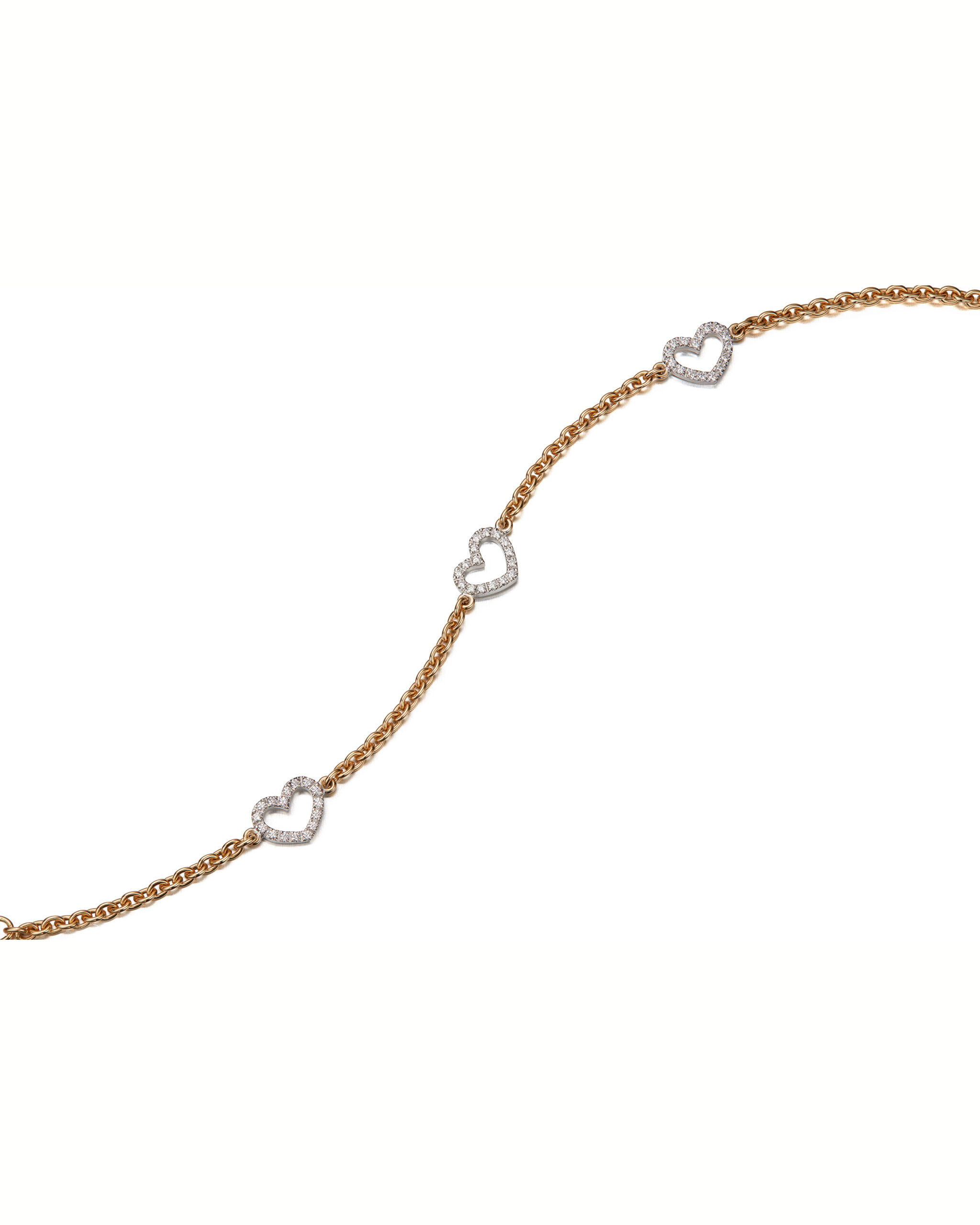 Delicate and playful, the gold Text Me chain bracelet features shimmering diamond hearts set in white gold. The price refers to the bracelet with one heart. Welcome to our atelier to discover variations for a custom-made piece.