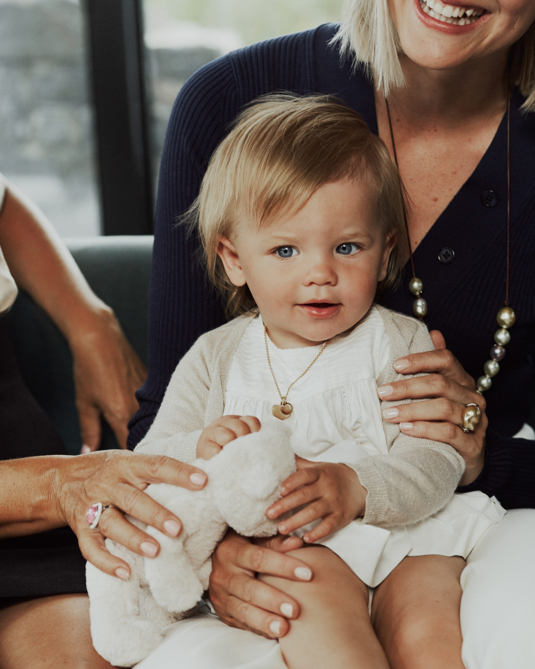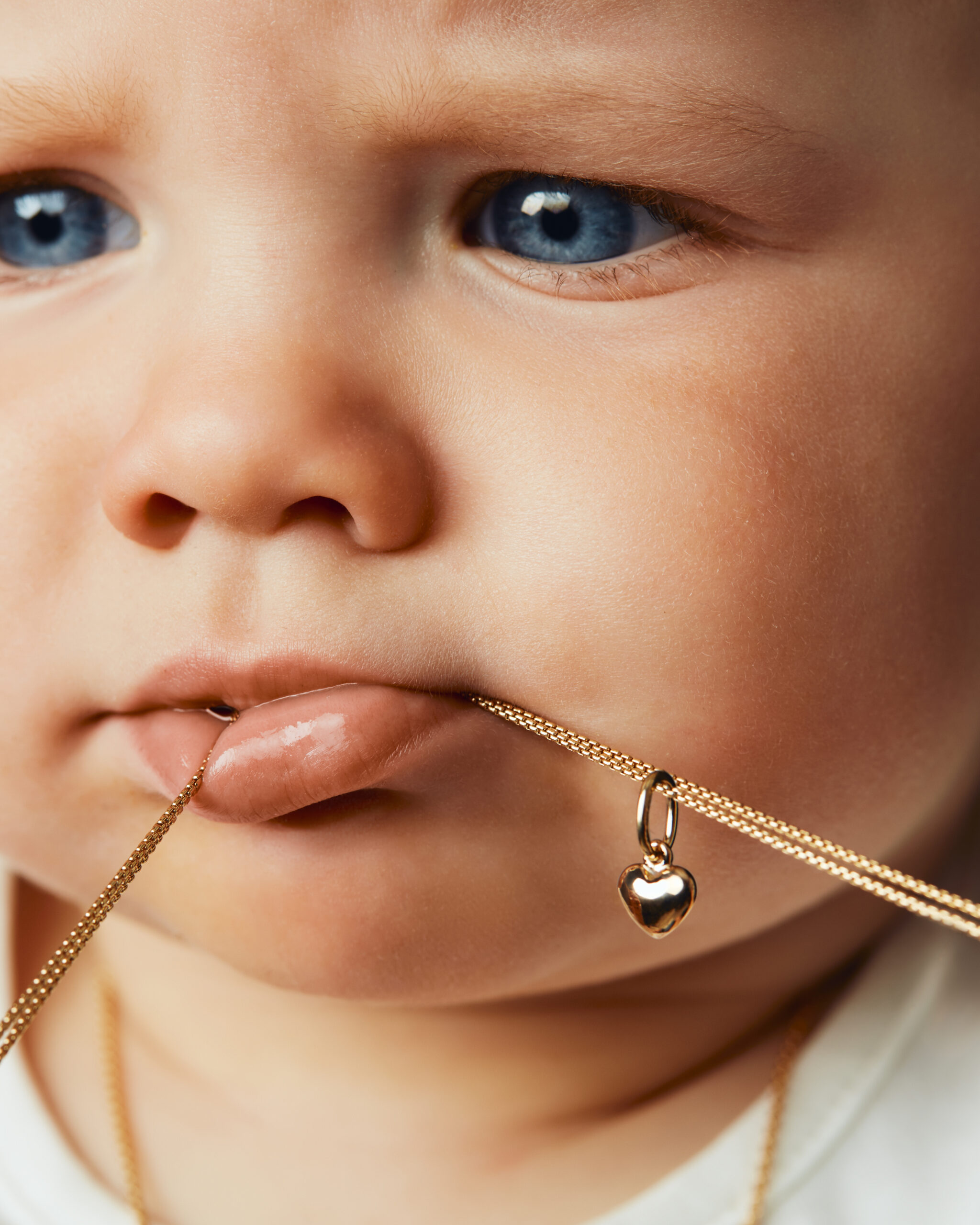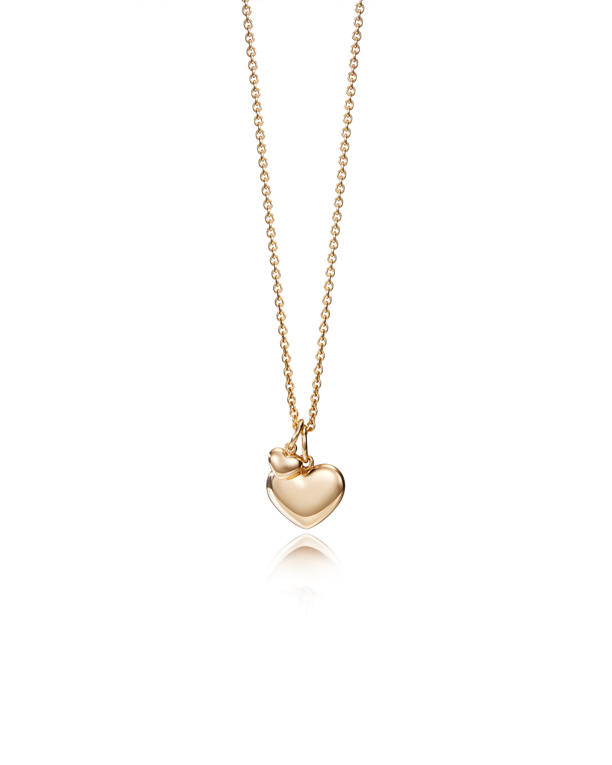 A sweet little children’s gold heart necklace for your little girl. A small engraving can be added to the heart pendant. A perfect gift idea for a new mother or a newborn is to match heart pendants in different sizes. Engraving or a small gemstone adds a fabulous memory to the pendant and to the moment. The price is for the smaller heart pendant. The chain is sold separately.
