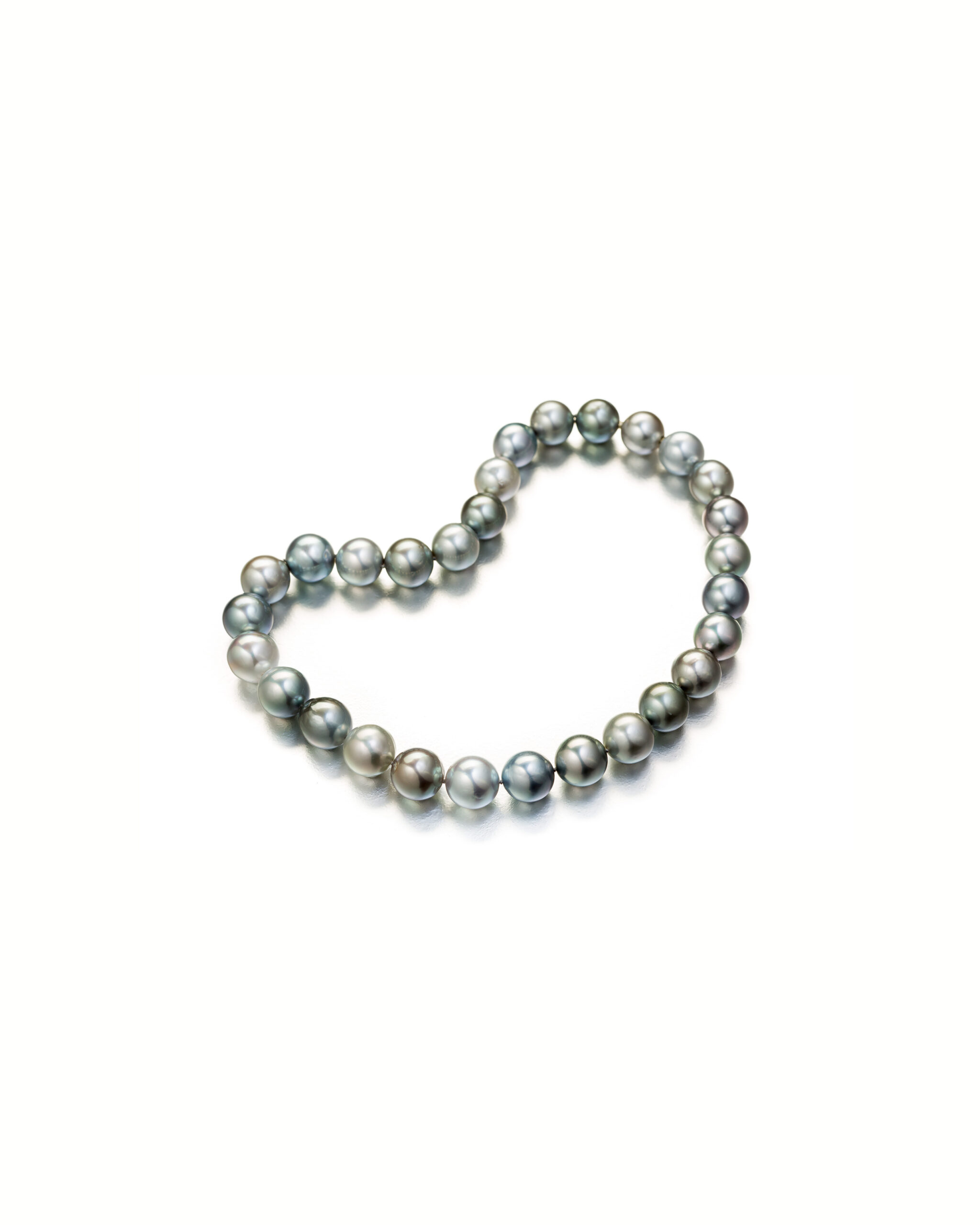 Pearls come in many varieties, so everyone is sure to find their favorite. You can choose white Akoya pearls for a young girl, dramatic Tahitian pearls for a dark-skinned beauty, or stunning South Sea pearls. Tahitian pearls offer a wide range of colors, including Peacock, which blends a dark gray base with green and red iridescence. In addition, pearl sizes and shapes vary, and each pearl is a unique natural treasure. This beaded pearl necklace features gorgeous, perfectly round Tahitian pearls.