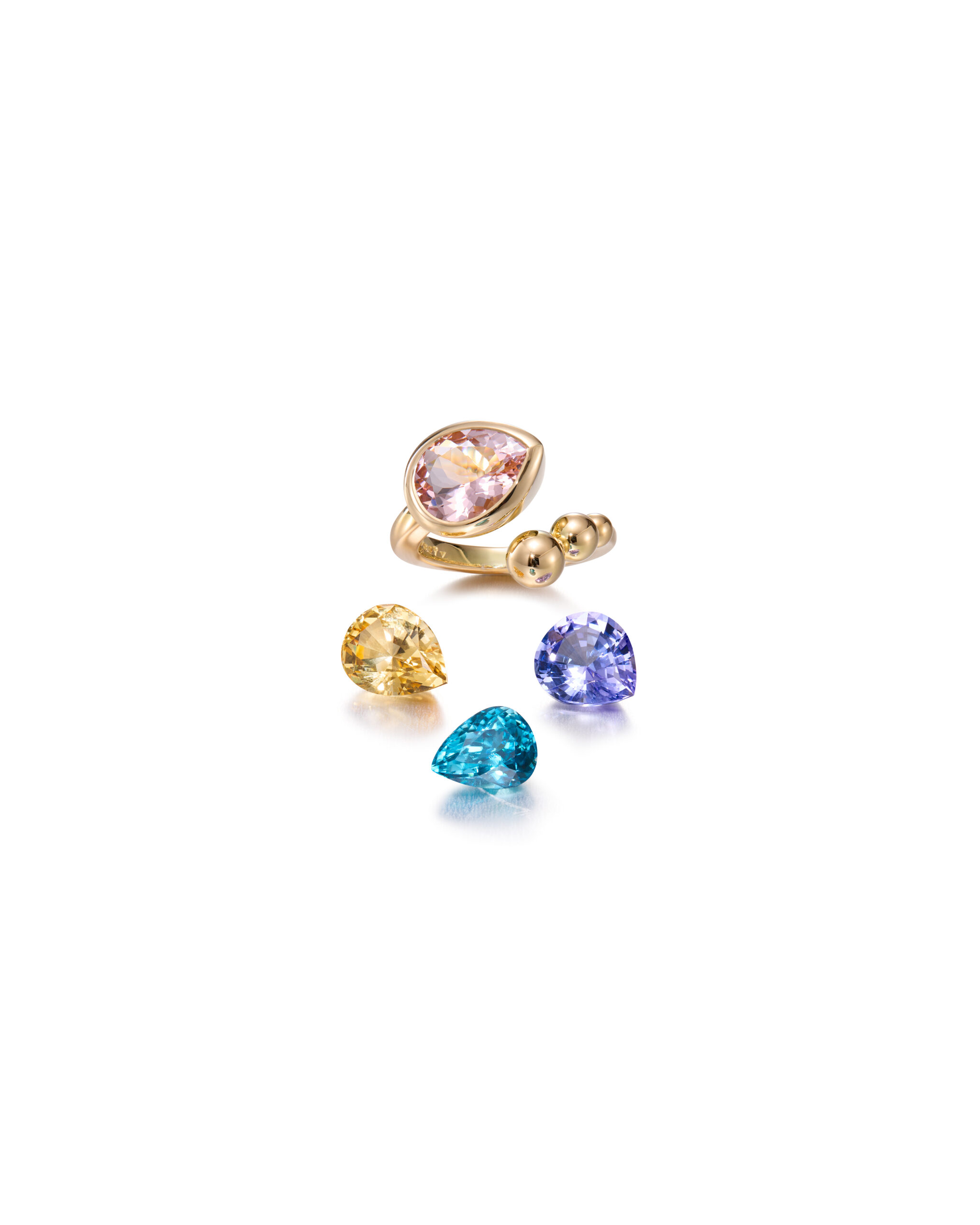 The inspiration for this drop-shaped ring came from the interplay between Tina and Jenny Tillander. Playing with colors and shapes lead to something new and beautiful. We have added some nice gemstones to illustrate the options available for this ring—for example, a warm yellow citrine, an intense topaz, or a truly beautiful amethyst.